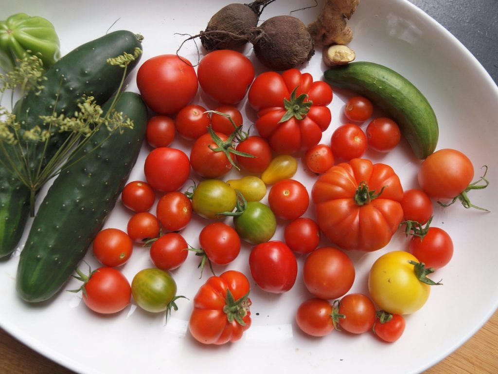 Die Bilanz: Wir haben richtig gut, abwechslungsreich und vielfältig gegessen, haben ständig neue Rezepte probiert, denn wir hatten auch neue Gemüsesorten wie den Palmkohl und weiße Auberginen und einen wahrhaften Tomatendschungel – Gewächshaus sei Dank! Die Arbeit hielt sich erstaunlicherweise in Grenzen, dafür waren die Beete ein bisschen … wildwüchsig. Bienen und Hummeln waren glücklich und sehr produktiv. Wir hatten so viel Obst wie noch nie (abgesehen von den süßen Erdbeeren, die nachts in die Mäusebäuche gewandert sind).
