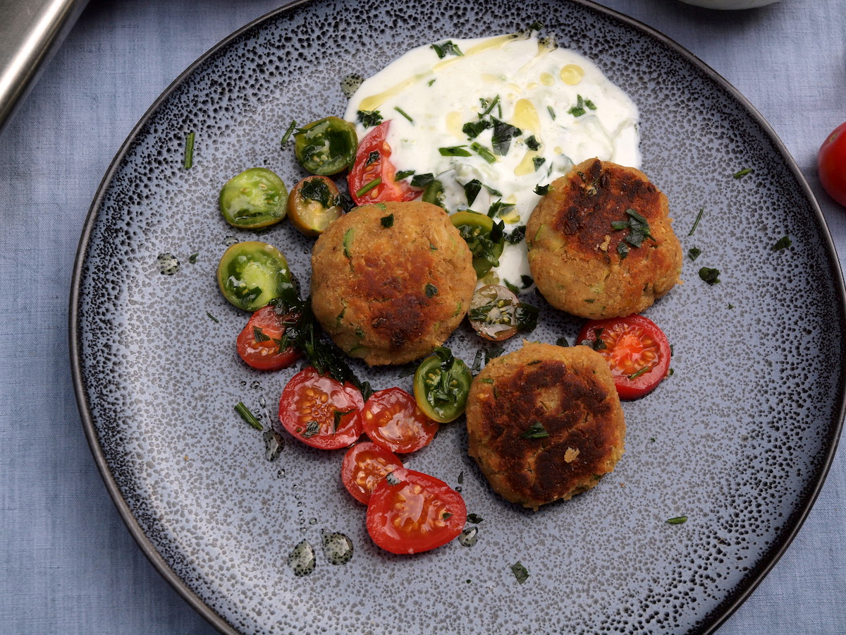 Lecker: Linsen-Zucchini-Patties mit Tzatziki