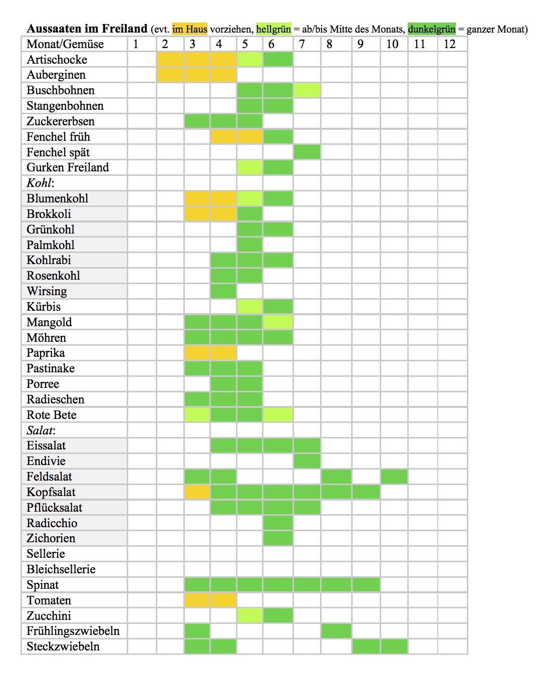 Ich mache also eine Bestandsaufnahme. Meine erste Tat: eine Liste, die mir einen Überblick über die Aussaatfenster verschafft. Und siehe da: es ist noch nicht alles verloren!