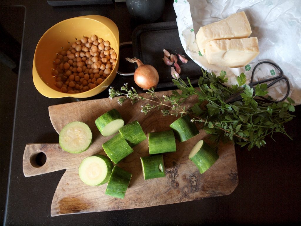 Die Zucchinipflanzen werfen unermüdlich eine Frucht nach der anderen ab. Deshalb noch ein Vorschlag aus der Rubrik „Geht schnell, schmeckt lecker, enthält viele Ballaststoffe und ist gesund“. Dazu einen bunten Salat und einen Kräuter-Dip. Fertig. Und schon ist der Zucchiniberg vorübergehend kleiner.