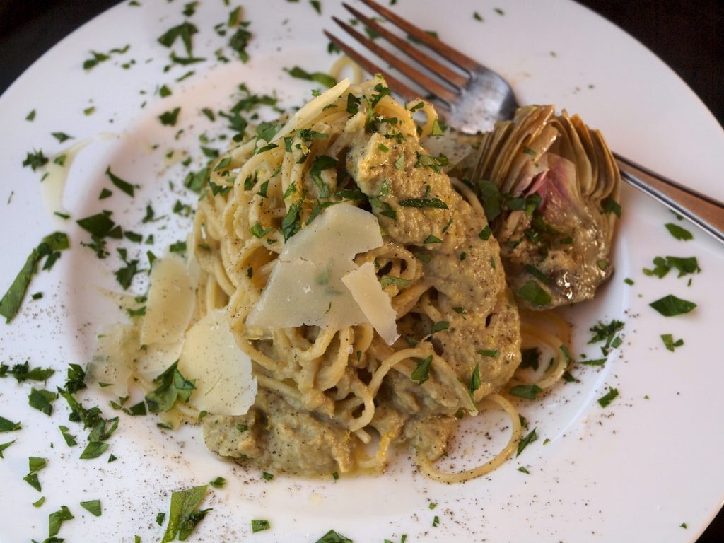 Dieses Rezept für Artischocken-Liebhaber habe ich aus Italien mitgebracht. Dort gibt es jetzt die jungen, kleinen Artischocken frisch auf dem Markt. Mittlerweile findet man sie auch in dem ein oder anderen Laden hier. Dann sollte man auf jeden Fall zuschlagen und diese köstliche Spaghetti-Variante ausprobieren.