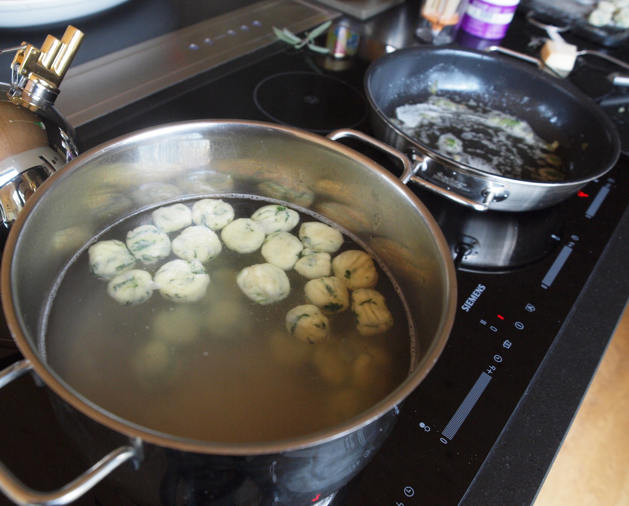 „Wer das nicht gegessen hat, hat nicht gelebt“, sagt mein 11-jähriger Sohn zu den Gnocchi, die vor ihm stehen. So einfach ist das. Gnocchi sind leicht zu machen und lohnen die Sauerei in der Küche. Nachteil: die Ansprüche an die Gnocchi Anderer steigen gewaltig. Selbst die im Restaurant schmecken äußerst selten so gut wie diese hier.