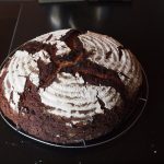 Beim Blech das Backtrennpapier auflegen. Den Teig auf die heiße Unterlage stürzen und 80 Minuten backen. Nach 10 Minuten die Hitze auf 200° C reduzieren, einmal ganz kurz Dampf entweichen und fertigbacken lassen.