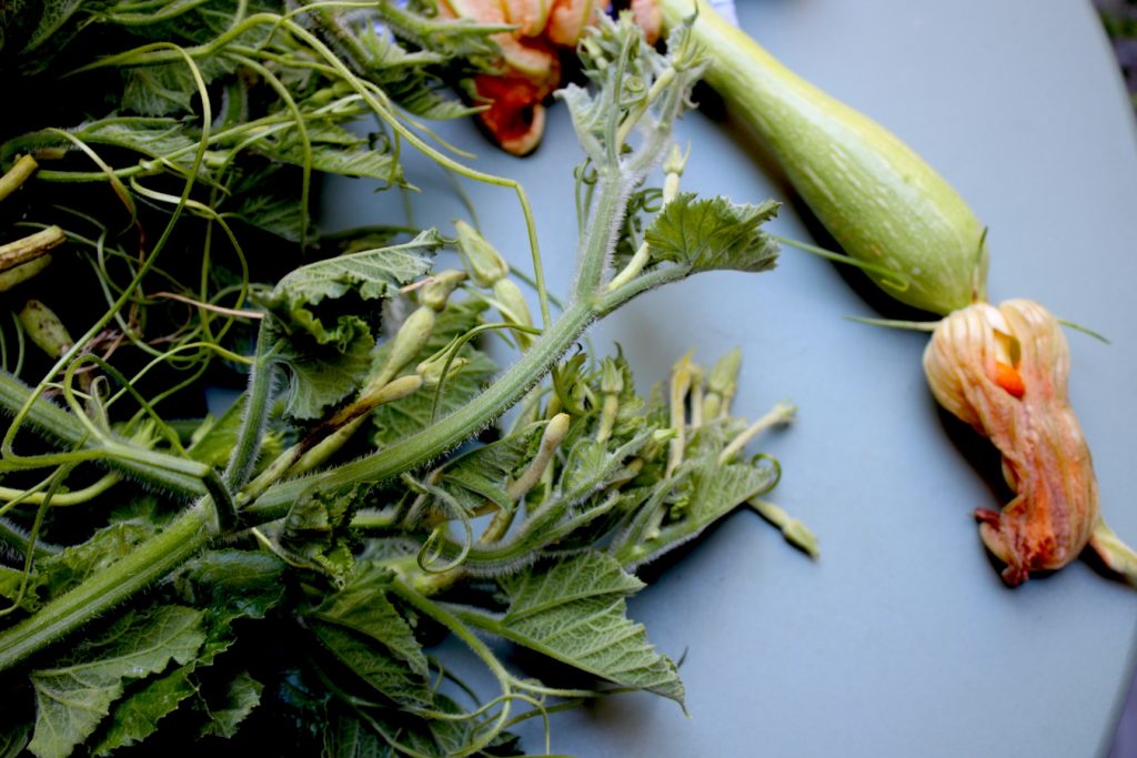 Jetzt kann man sich natürlich fragen, was ein Rezept soll, für das man die nötigen Zutaten nicht ohne Weiteres bekommt. Meine Antwort: Schlangenkürbisse lassen sich leicht selbst anbauen und sind dazu nnoch dekorativ. Sie ranken und bilden viele Früchte. Deshalb unbedingt für nächstes Jahr vormerken und rechtzeitig Samen bestellen (suchen nach: Zucchina lunga da tenerumi bzw. Zucchetta serpente di Sicilia)!